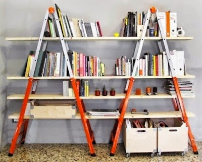 Para quem quer gastar pouco, várias são as opções para criar as próprias estantes. E vale tudo, escadas, violão… para a criatividade não há limites… rsrsrs