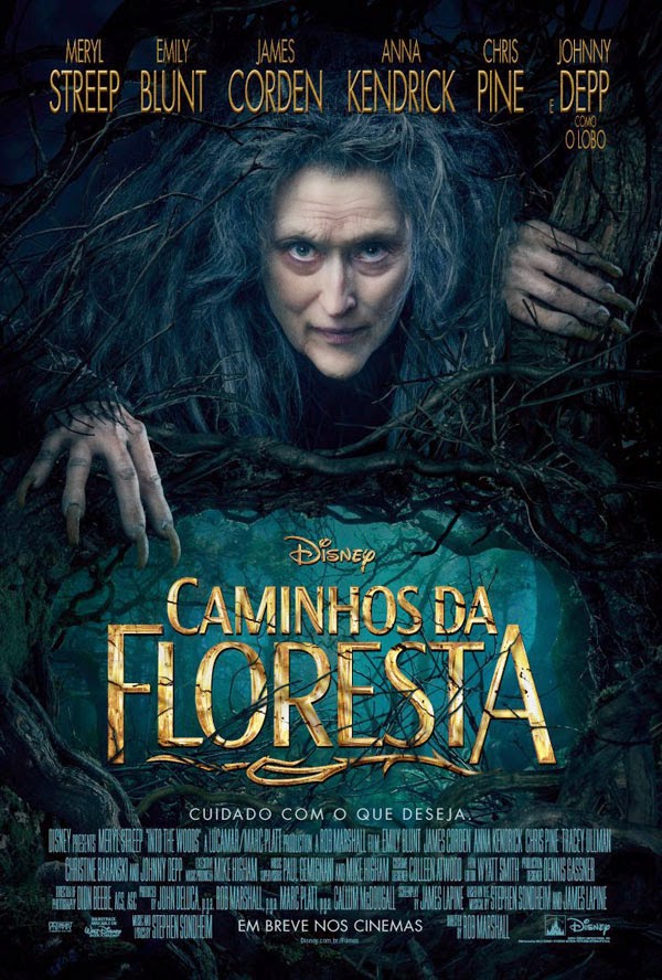 Um padeiro e sua mulher (James Corden e Emily Blunt) vivem em um vilarejo e, um dia, eles recebem a visita da bruxa (Meryl Streep), sua vizinha. Ela avisa que lançou um feitiço sobre o casal para que não tenha filhos, como castigo por algo feito pelo pai do padeiro, décadas atrás. Ao mesmo tempo, a bruxa avisa que o feitiço pode ser desfeito caso eles lhe tragam quatro objetos: um capuz vermelho como sangue, cabelo amarelo como espiga de milho, um sapato dourado como ouro e um cavalo branco como o leite. Eles têm apenas três dias para encontrar tudo, caso contrário o feitiço será eterno.