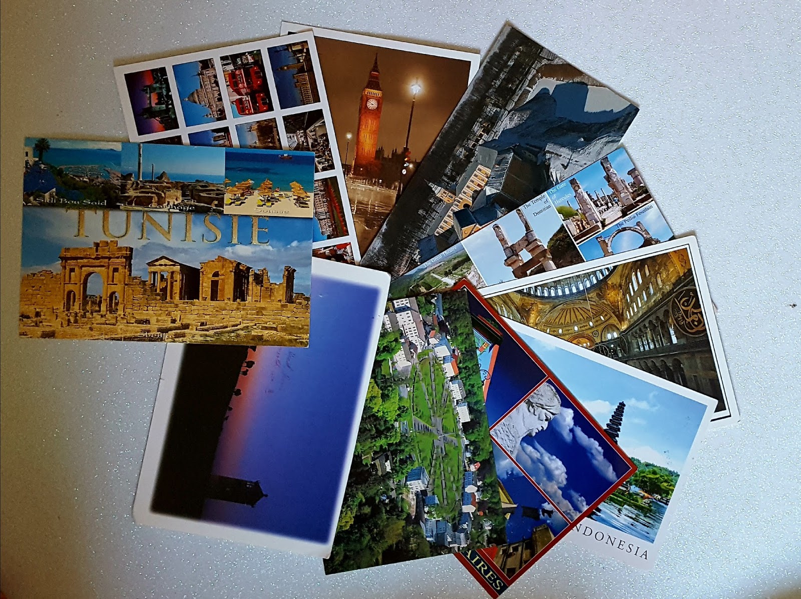 Minha coleção começou com postais nacionais, por conta das minhas correspondentes, muitas das quais moram nas capitais ou em cidades turísticas, onde postais são fáceis de conseguir. Mas logo os internacionais chegaram e, por incrível que pareça, são a maioria em minha coleção, mesmo eu nunca tendo saído do país.
