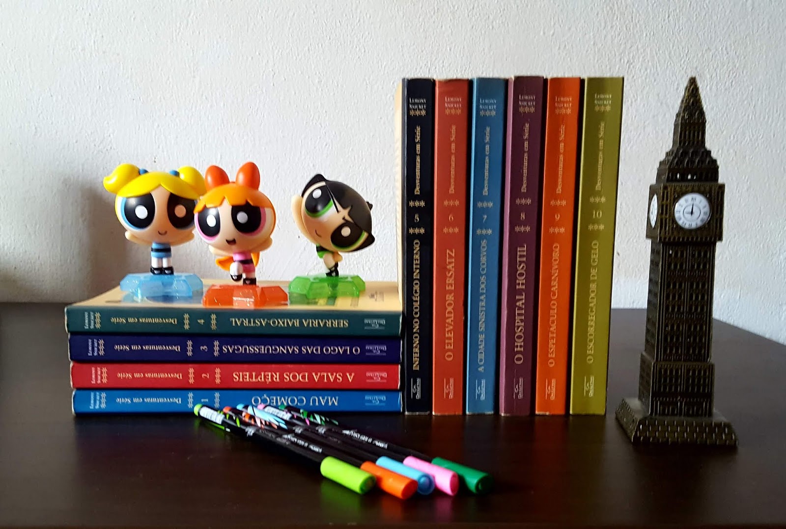 Eu já conhecia a história por conta do filme, estrelado por Jim Carrey, em 2004. Depois vi a série, produzida pela Netflix. E meu namorado achou todos os volumes (ou quase todos, já que me deu 10 e são 13) num sebo, por um preço beeeem acessível. Então tratou logo de me dar todos os que encontrou.
