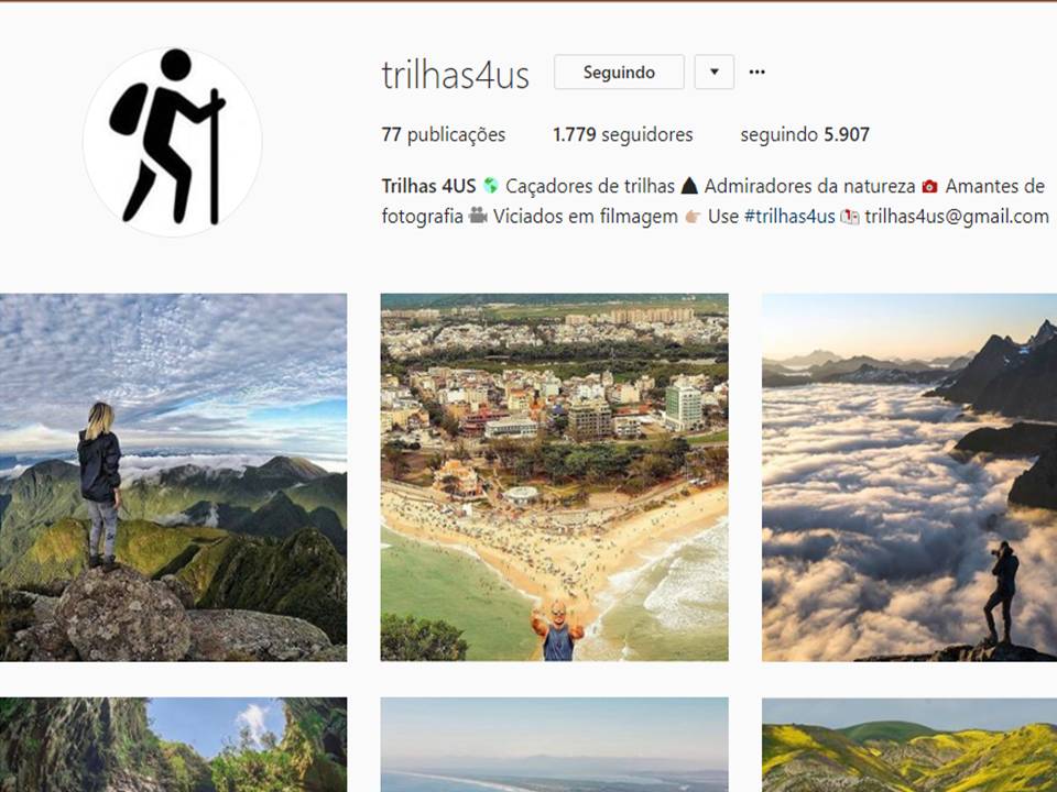 Gosto muito de seguir perfis de viagens e trilhas, principalmente porque fico babando nas fotos que as pessoas fazem e sonho em viajar para esses lugares paradisíacos… Alguns deles são: