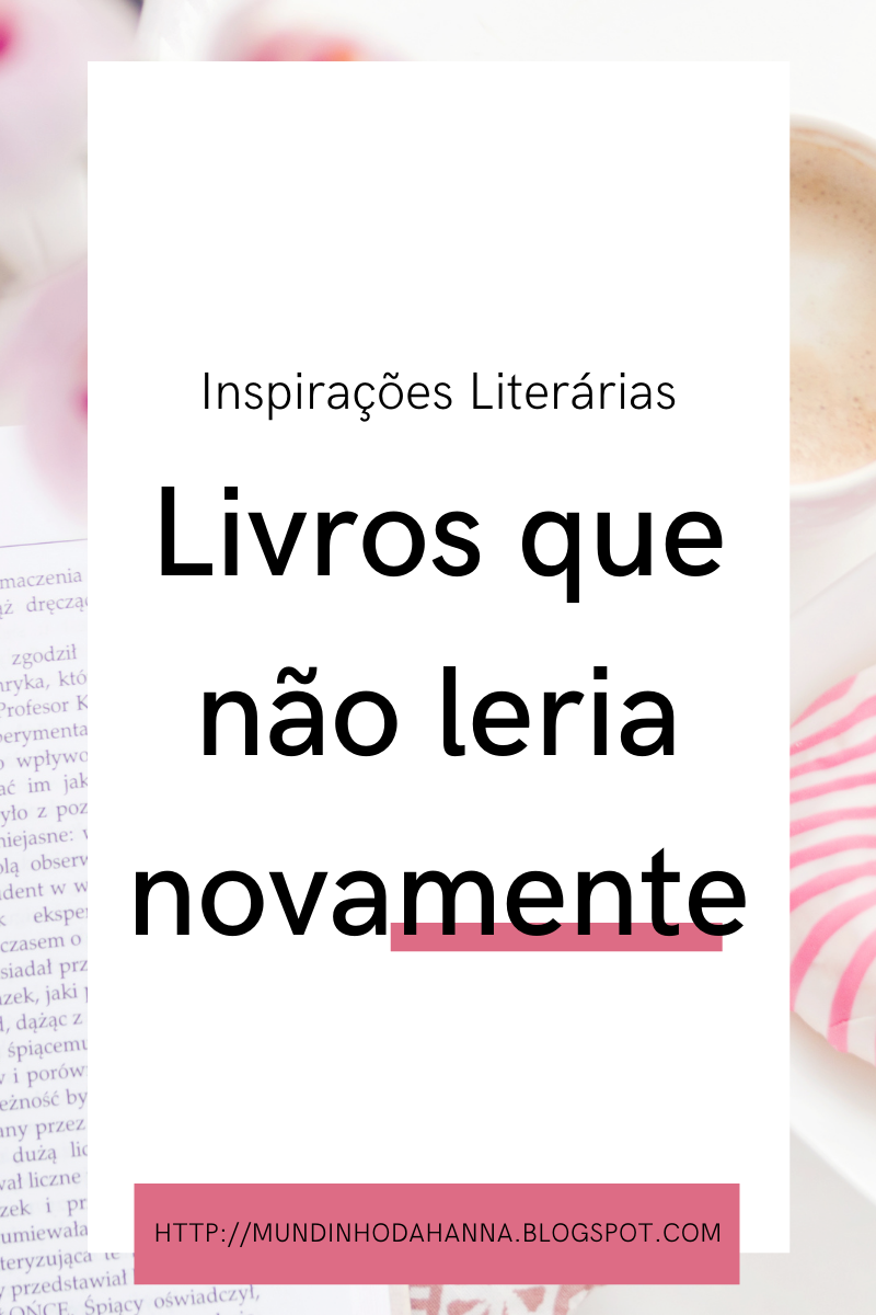 E esses foram os livros que eu não leria novamente. Lembrando que, o fato de que eu não queira mais ler, não significa que os livros sejam ruins. Pelo contrário, apenas já deixaram a sua marca e já cumpriram o seu papel na minha vida de leitora .