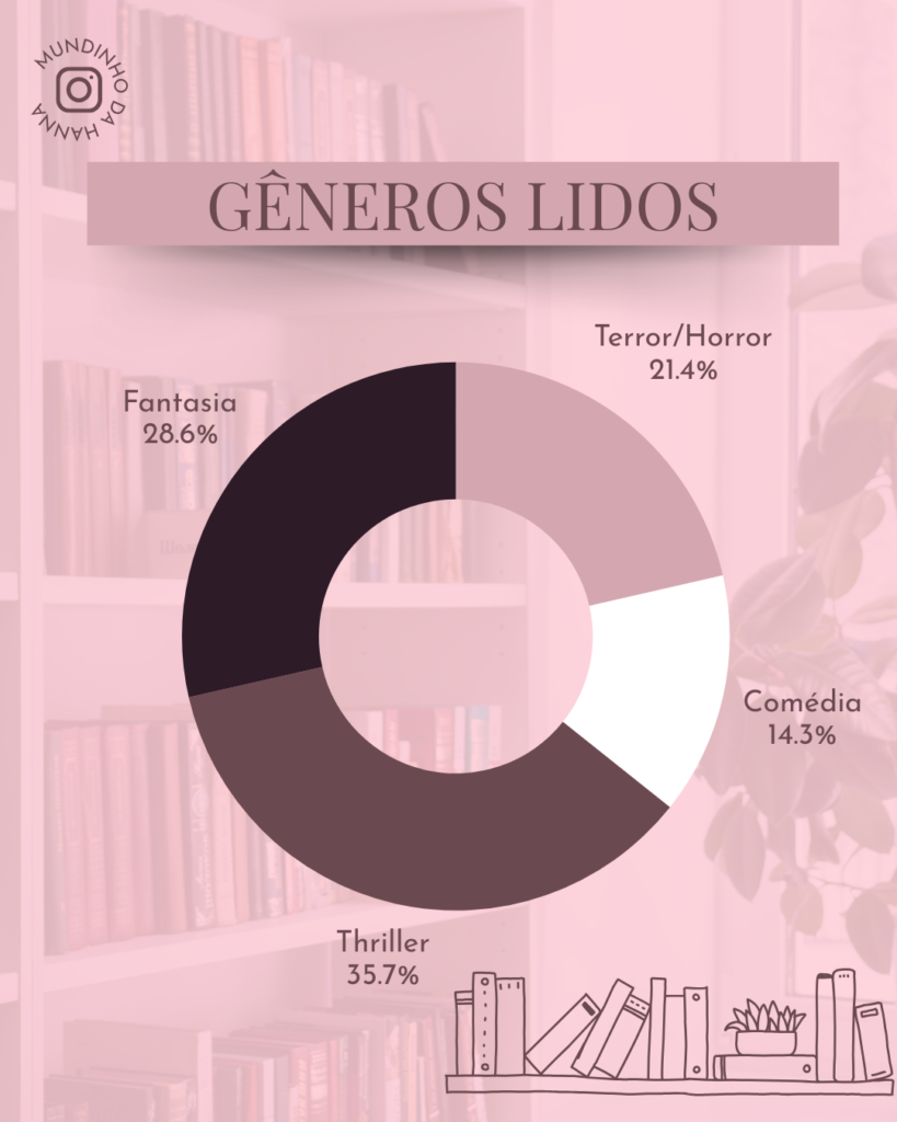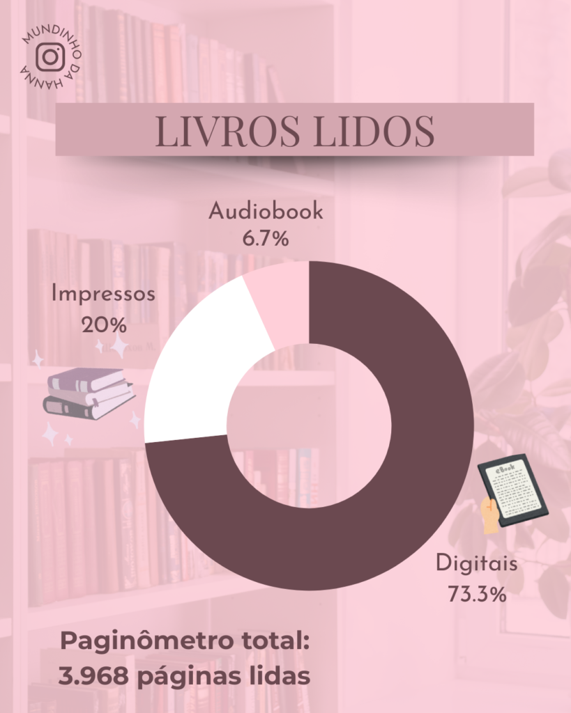 Já em relação aos gêneros, eu me mantive firme na zona de conforto, mas achei legal ter voltado a ler fantasia, que é um gênero que não leio desde a adolescência. Quanto ao formato, eu já desisti de tentar mudar esse balanço. Não tem como lutar contra a facilidade do digital, até porque é mais fácil o kindle está na minha bolsa do que um livro físico. Isso já dias bastante coisa, né?