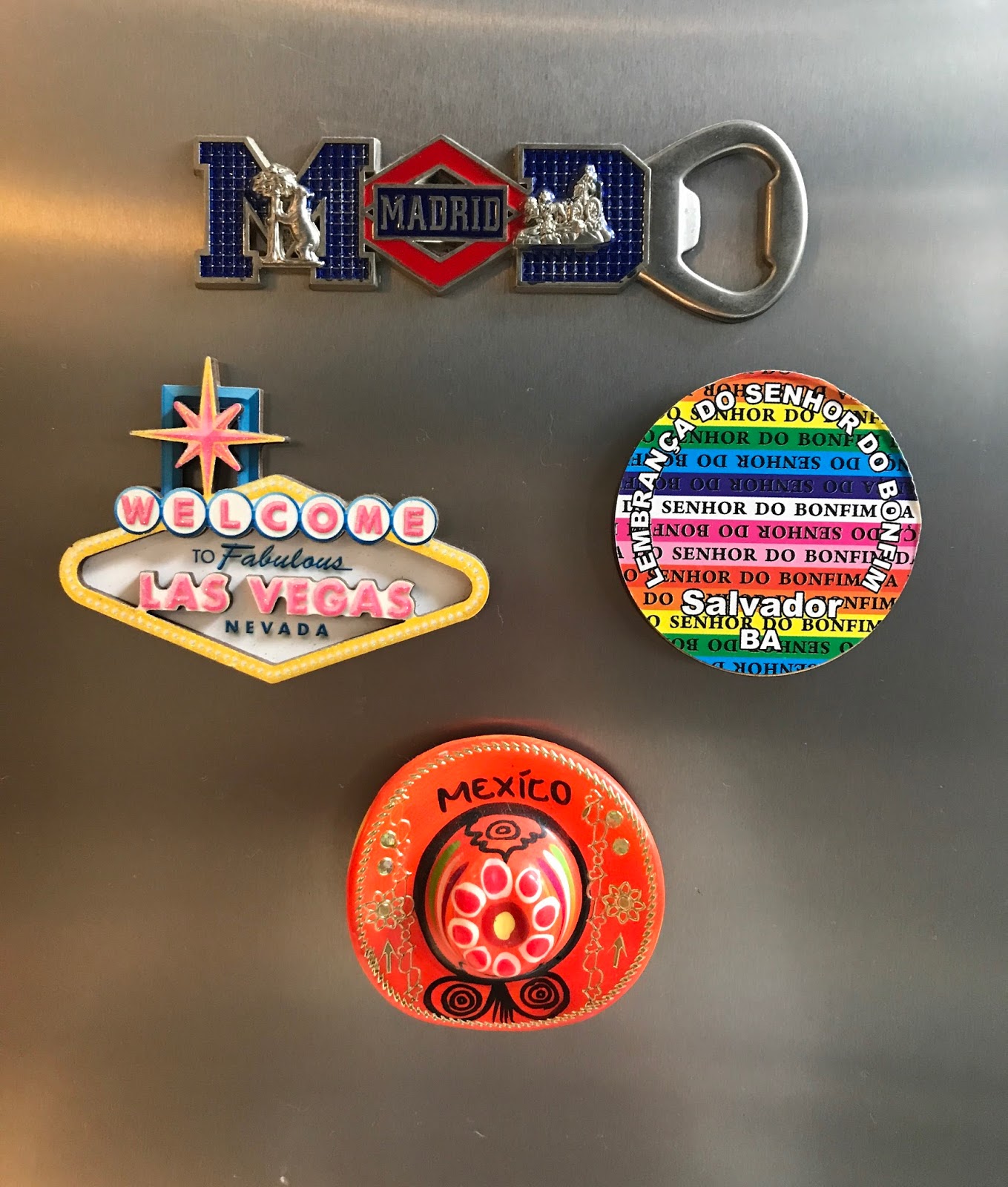 Este ano completa 3 anos que me casei e quando começamos a montar nossa casa quase que instantaneamente surgiu a vontade de colecionar imãs de geladeira de lugares que visitássemos, a coleção ainda é pequena mais cheia de sonhos e potencial para crescer mais e mais.