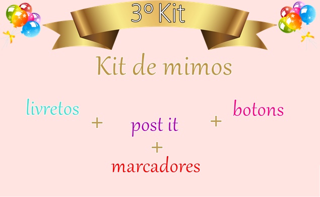 São 2 kits com livros + marcadores e 1 kit de mimos. 3 kits = 3 ganhadores.