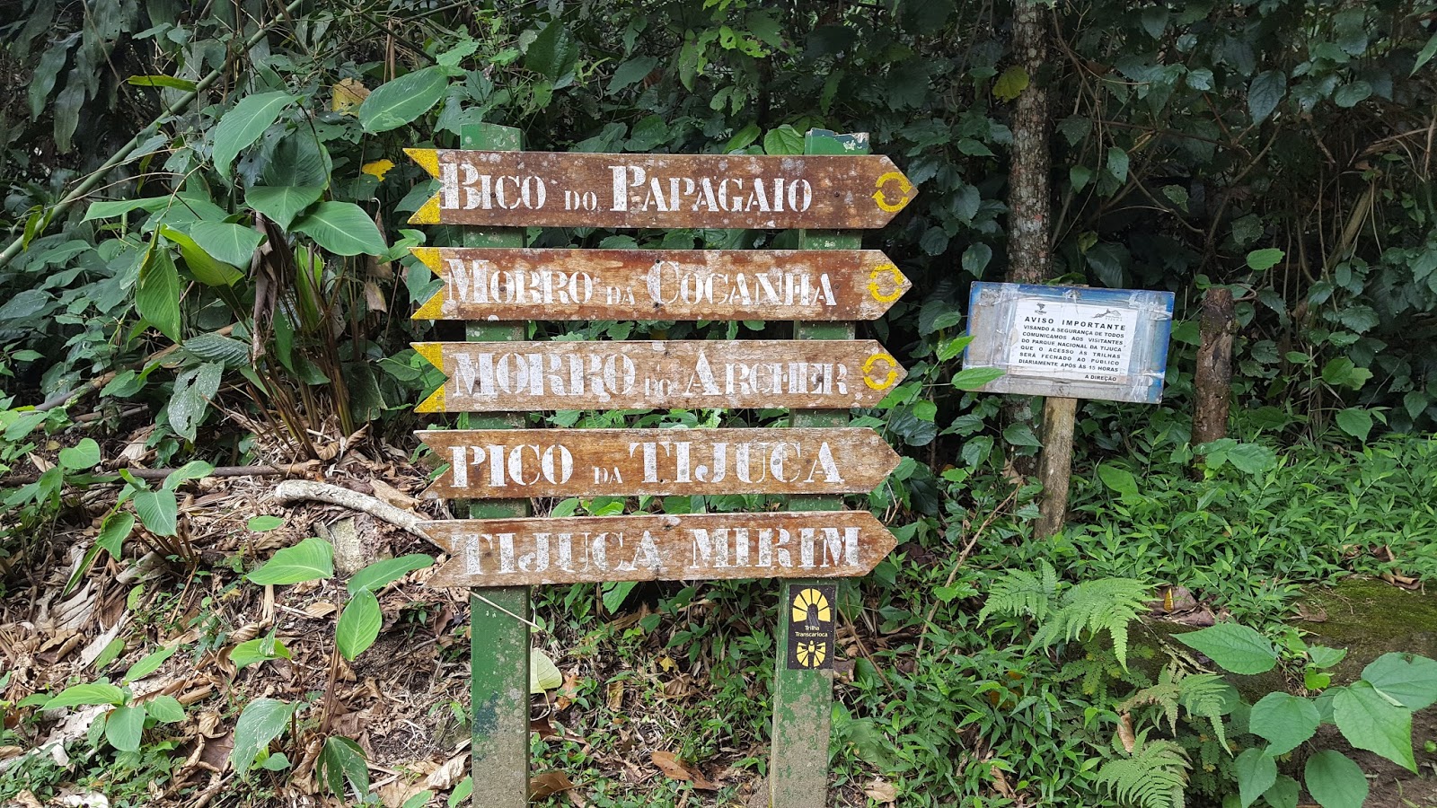 Nossa terceira, mas não menos importante parada, foi o Pico da Tijuca. Para quem não sabe, ele é o segundo maior pico do Estado do Rio de Janeiro, a 685 m acima do nível do mar. E a trilha é cansativa, por ser pura subida, mas com os tempos de parada para descansar, levamos umas 2h para subir o trajeto todo, que tem no total 3,8 Km. Por ser bem alto, mesmo que você esteja no meio da floresta, é possível sentir a diferença na dificuldade, apesar da trilha ser considerada nível moderado. Assim como todas as trilhas que encontramos por lá, ela é bem marcada e contém trechos em recuperação.